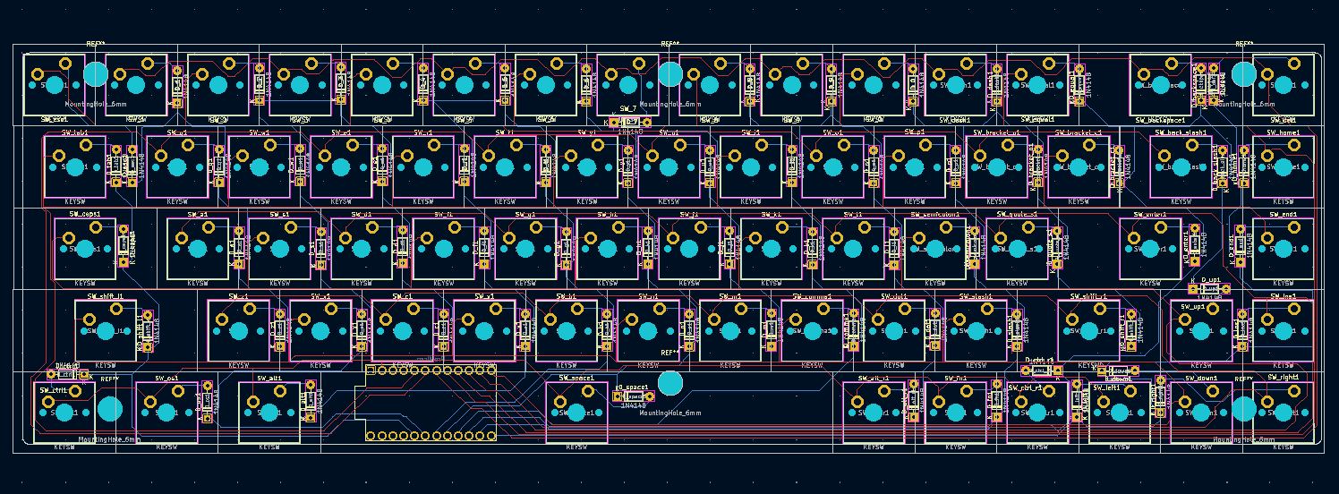 Lý do dẫn đến hôm nay mình quyết định tự làm Macropad bắt nguồn từ việc gần đây mình mới mua Keychron K6. Mới dùng mà cứ sợ nó bị hư :)), mà hư thì chỉ có nước đi mua cái mới hoặc kit mới mà giá trị cũng hơn 1 nửa rồi. Và một lý do quan trọng nữa là Keychron thiết kế layout phím K6 ng* vãi, có mỗi việc đổi hiệu ứng LED mà làm nguyên một phím, thay bằng phím Del có phải tốt hơn không. Ngoài ra mình cũng rất hay dùng Home và End. Thế là đánh đổi việc bảo hành, mình tháo ra đo đạc kích thước PCB và vị trí của switch. Rồi mày mò tìm hiểu phần mềm KiCad, cách vẽ mạch, đi dây. Với kỳ vọng nếu sau này có hư PCB thì chỉ việc đi in cái mới thay thế.