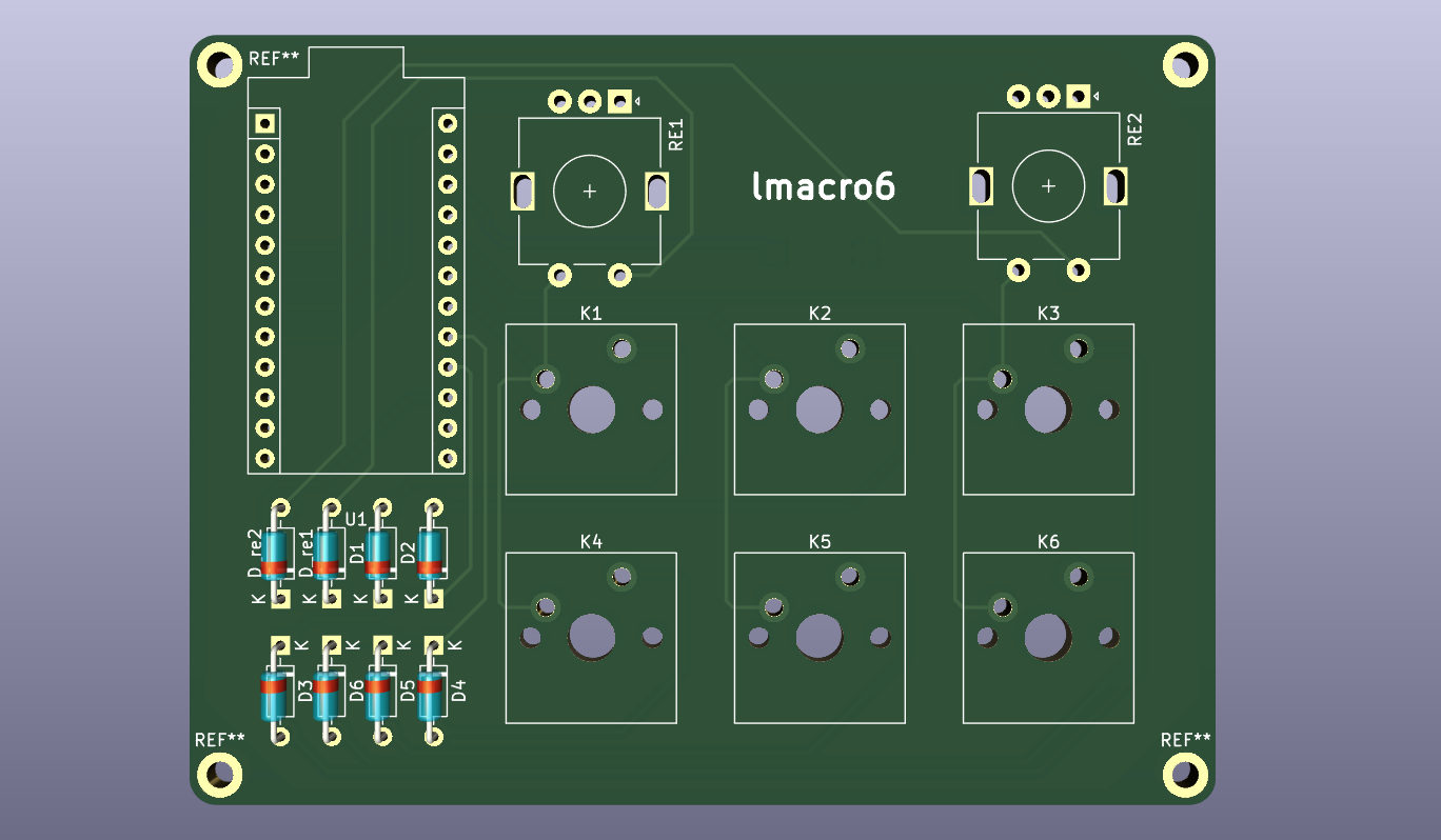 Macropad của mình có 6 phím, và 2 núm xoay có thể dùng chỉnh âm lượng hoặc độ sáng màn hình. Mình đặt tên nó là lmacro6.
